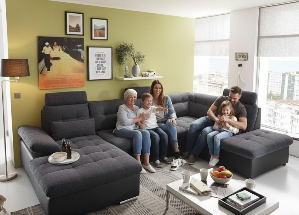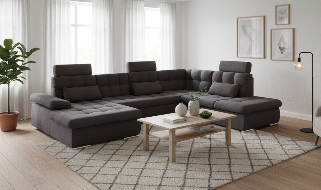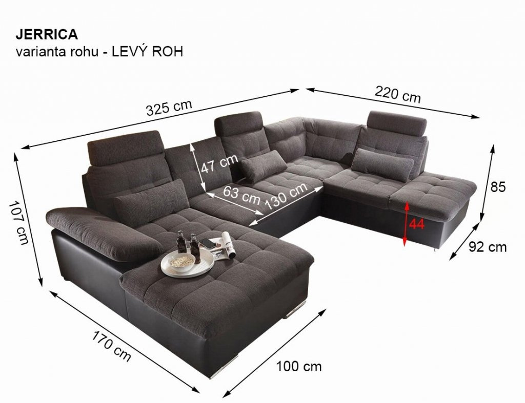 Sedací souprava JERRICA nabízí maximální prostor, maximální pohodlí a maximální praktičnost. Svým pojetím a rozměry uspokojí i opravdu početnou rodinu a ještě zůstane místo třeba pro návštěvu. Po rozložení Vám sedací souprava Jerrica nabídne prostorné lůžko pro občasné přespání o opravdu velkorysých rozměrech 266 x 140 cm, které je určeno pro uložení Vaší milé návštěvy (nehodí se však na denní užívání). V otomanu dále najdete menší úložný prostor na různé potřebnosti.