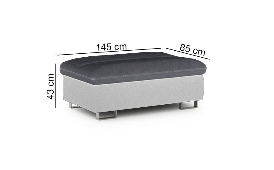 Opravdu nadstandartně prostorný taburet Roma má kovové pochromované nohy zajišťující vysokou nosnost a stabilitu. Díky použitým materiálům je zároveň velice pohodlný.